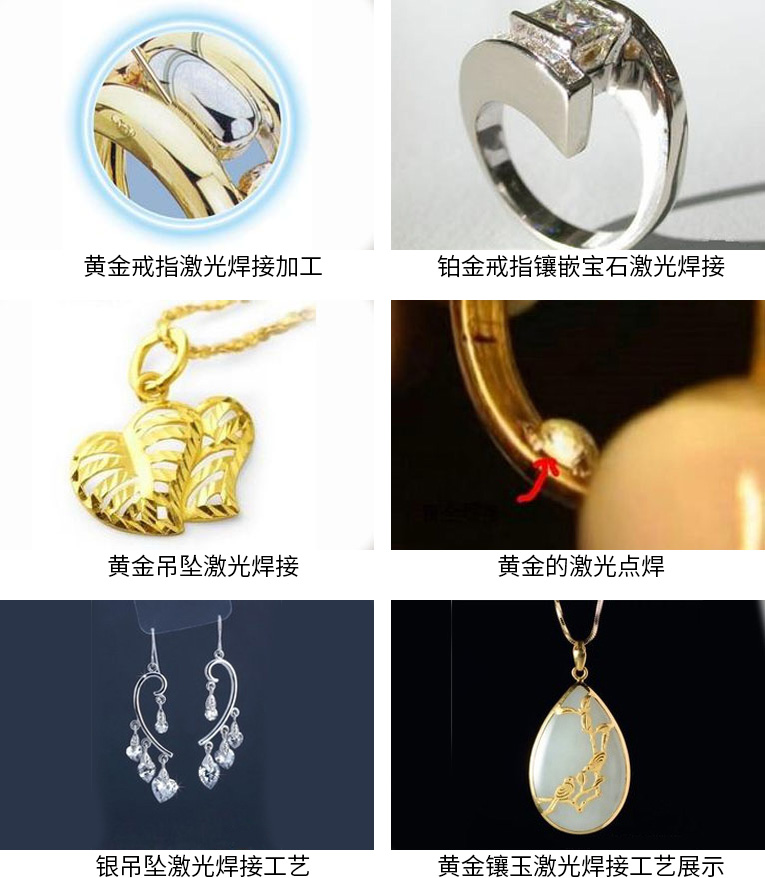8、可激光焊接各種金屬材質(zhì):金,銀,鉑金,銅,鈦,不銹鋼等各種金屬材料。包括:戒指,耳環(huán),手鏈,項鏈,領帶夾,袖口等珠寶首飾,金屬飾品的激光焊接。