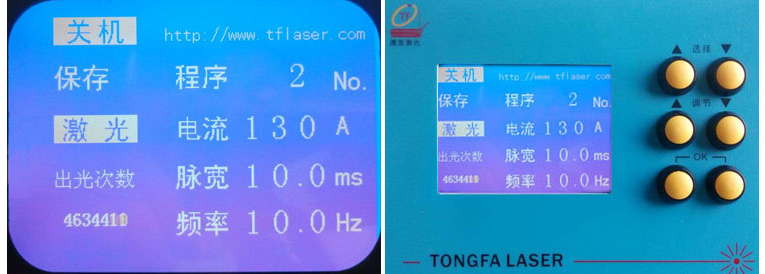 2、本首飾激光點焊機軟件可選擇中文或者英文界面,對不同加工位置選擇相應的激光焊接加工參數(shù)。由選擇按鈕移動光標到相應的參數(shù)位置,由調(diào)節(jié)按鈕調(diào)節(jié)參數(shù)的大??;