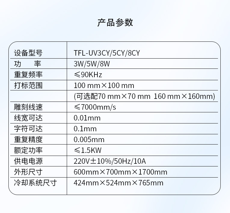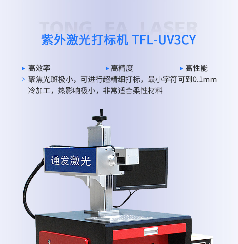 通發(fā)紫外激光打標機聚焦光斑極小,可進行超精細打標,最小字符可到0.1MM,冷加工,熱影響極小,不會有明顯燒痕,非常適合柔性材料、玻璃PCB標識、特殊材料等高品質打標加工